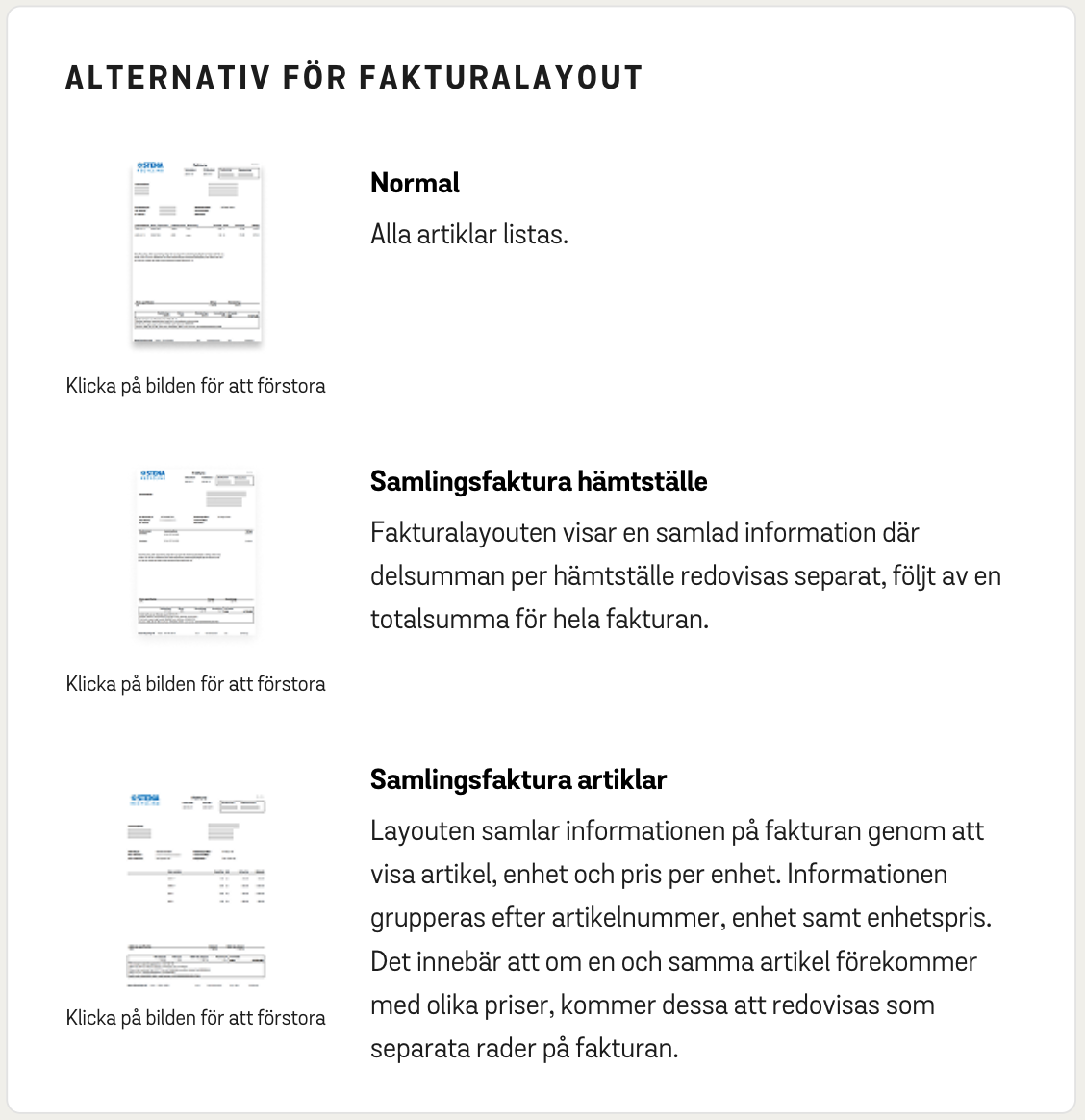 Alternativ för fakturalayout